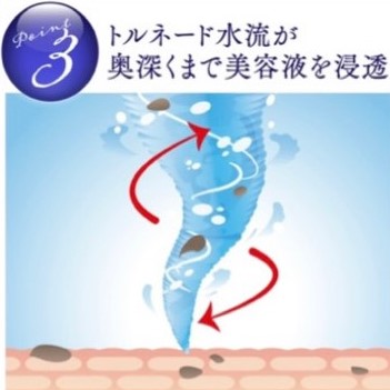 柔らかくなった角栓や毛穴の黒ずみを、2種類の美容液によるトルネード水流で取り除きながら、肌に栄養成分と潤いを与えます。