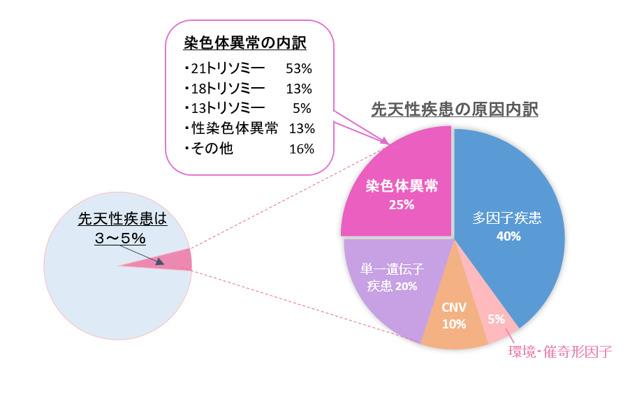 この3つを合計すると、胎児の染色体疾患の約7割に相当します。