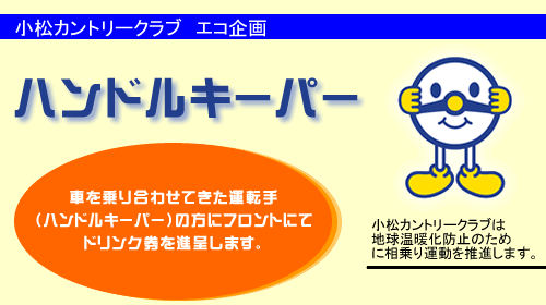 | 平成20年10月6日小松カントリークラブは小松市安全運転管理者協議会より、飲酒運転の根絶に取り組む「ハンドルキーパー運動推進事業所」に指定されました。 |