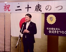 | 新成人4名が出席し、金沢市長をはじめ来賓の方々より 祝辞や励ましのお言葉をいただきました。 式典後の祝賀会では、自己紹介やスピーチが行われ、新成人が通われている各々の事業所から届いたメッセージも披露されました。 |