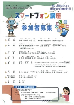 対象にスマートフォン講座を開催いたします。ご興味のある方は是非お申込みください!