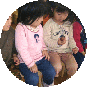 ばらぐみさんとゆりぐみさんは園庭の花壇に