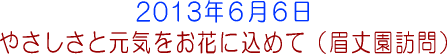 ばらぐみさんは、お花を持って眉丈園を訪問しました。