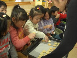 ばらぐみさんはエプロンに着替えて、クッキー作りに挑戦しました。