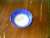 1. まず、粉ゼラチンを深いお皿に入れて、粉が見えなくなるまで水を入れる。量はだいたいコップ半分。どろっとした感じになる。